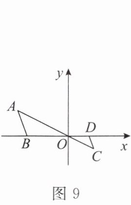 3. 如图 9,$\triangle OAB$ 和 $\triangle OCD$ 是以原点 $O$ 为位似中心的位似图形,已知 $A(-4,2)$,$C(2,-1)$,则 $\triangle OCD$ 与 $\triangle OAB$ 的面积的比值是