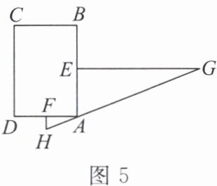 9. 《九章算术》中,有一测量问题:“今有邑,东西七里,南北九里,各开中门,出东门一十五里有木,问:出南门几何步而见木?”大意如下:如图5,有一座城池可看作矩形$ABCD$,城墙$AB$长$9$里(里为长度单位),城墙$AD$长$7$里,东门$E$,南门$F$分别是$AB$,$AD$的中点,正对着东门$E$相距$15$里的点$G$处有一棵树。若出南门朝南边走,走到点$H$处时,刚好能看到点$G$处的树,则$FH$的长为(