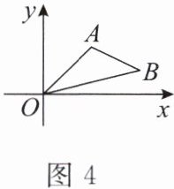 8. (2023辽宁朝阳中考)如图4,在平面直角坐标系中,已知点$A(2,2)$,$B(4,1)$,以原点$O$为位似中心,相似比为$2$,把$\triangle OAB$放大,则点$A$的对应点$A'$的坐标是(
