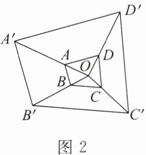 5. 如图2,以点$O$为位似中心,作四边形$ABCD$的位似图形$A'B'C'D'$。若$\frac{OA}{OA'}=\frac{1}{3}$,$AB = 2$,则$A'B'$的长是(