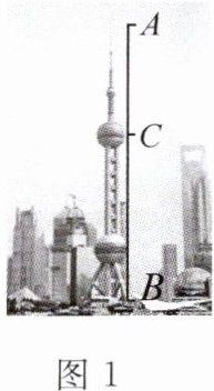 2. 如图1,上海东方明珠电视塔的塔高$AB$为$468m$,上球体到底部的距离$BC$约为$289.2m$,二者之比约为$0.618$,因此显得格外挺拔。这体现了数学中的(