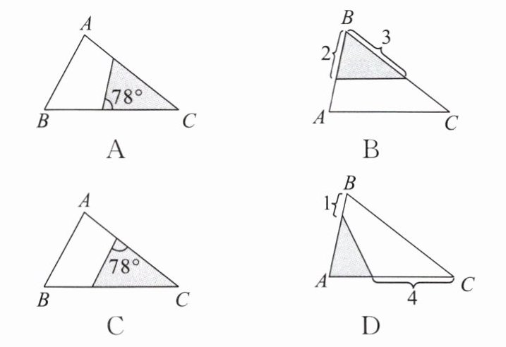 7. 已知在$\triangle ABC$中,$\angle A = 78^{\circ}$,$AB = 4$,$AC = 6$,下列阴影部分的三角形与$\triangle ABC$不一定相似的是(