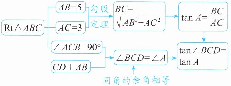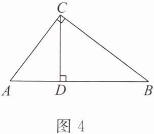 例1 如图4,$CD$是$Rt\triangle ABC$斜边上的高。若$AB = 5$,$AC = 3$,则$\tan \angle BCD$为()。