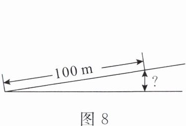 3. 如图8,一条上山直道的坡度为$1:7$,沿这条直道上山,每前进$100m$所上升的高度为