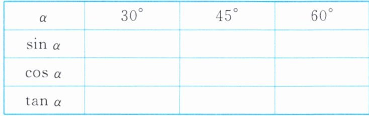 $30^{\circ},45^{\circ},60^{\circ}$角的三角函数值: