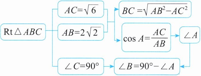 例 1 在 Rt△ABC 中,∠C = 90°,AC = √6,AB = 2√2。解这个直角三角形。