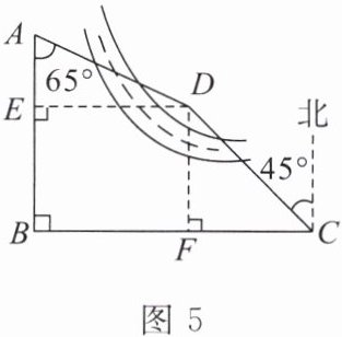 解 如图5,过点D作$DE\perp AB$于点E,过D作$DF\perp BC$于点F,则四边形EBFD是矩形。