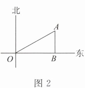 2. 如图2,小雅家(图中点O处)门前有一条东西走向的公路,测得有一水塔(图中点A处)在她家北偏东$60^{\circ}$方向$500m$处,那么水塔所在的位置到公路的距离AB是(