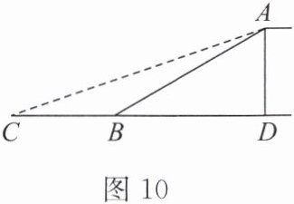 4. 某商场为了方便顾客使用购物车,将自动扶梯由坡角为$30^{\circ}$的坡面改为坡度为$1:3$的坡面。如图10,$BD$表示水平面,$AD$表示自动扶梯的铅直高度,改造后自动扶梯的坡面$AC=6\sqrt{10}\mathrm{m}$,则$AD=$