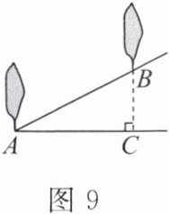 3. 如图9,某村准备在坡度为$1:2$的山坡上栽树,要求相邻两棵树之间的水平距离$AC$为$4\mathrm{m}$,则这两棵树在坡面上的距离$AB$为