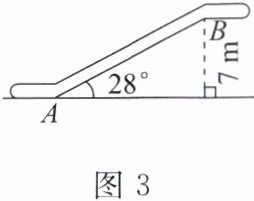 5. (2023山东威海中考)如图3,某商场有一自动扶梯,其倾斜角为$28^{\circ}$,高为$7\ m$。用计算器求$AB$的长,下列按键顺序正确的是(