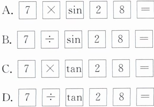 )A.$\boxed{7}\ \boxed{×}\ \boxed{\sin}\ \boxed{2}\ \boxed{8}\ \boxed{=}$