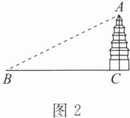 4. 如图2,在点$B$处测得塔顶$A$的仰角为$26^{\circ}$,点$B$到塔底$C$的水平距离$BC = 30\ m$,那么塔$AC$的高度为(