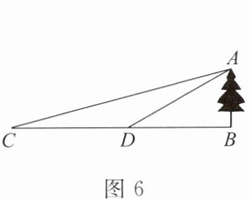 13. 如图6,树$AB$垂直于地面,为测树高,小明在$C$处测得$\angle ACB = 15^{\circ}$,他沿$CB$方向走了$20\ m$,到达$D$处,测得$\angle ADB = 30^{\circ}$,则树的高度是