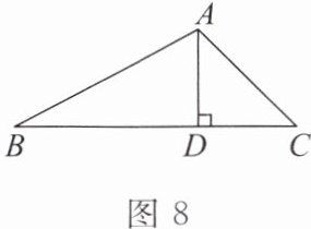 15. (14分)如图8,在$\triangle ABC$中,$AD$是$BC$边上的高,$\sin C = \frac{\sqrt{2}}{2}$,$\tan B = \frac{1}{2}$,$AD = 2$