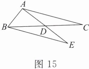 7. 如图 15,在$\triangle ABC$中,$AB = 5$,$AC = 13$,$AD = 6$,$\triangle ADC$与$\triangle EDB$关于点$D$成中心对称.求$BC$的长.