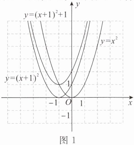 在同一平面直角坐标系中,二次函数 $ y = x^2 $,$ y = (x + 1)^2 $,$ y = (x + 1)^2 + 1 $ 的图象如图 1。观察图象,解答下列各题: