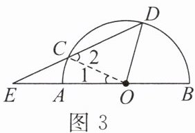 $ \because OC = OD $,$ \therefore \angle D = \angle 2 = 2\angle E $。