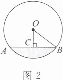 3. 一条排水管的截面如图2,已知排水管的半径OB=5cm,水面宽AB=8cm。过点O作OC⊥AB于点C,则BC的长为