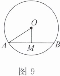 2. 如图9,⊙O的弦AB=$4\sqrt{3}$,M是AB的中点,OM=2,则∠OAB的度数为(