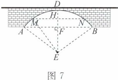 (2) 如图7,设水位上涨后水面跨度MN为60m,MN交ED于点H,连接EM。