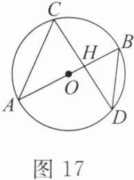 6. 如图17,AB是⊙O的直径,且经过弦CD的中点H。已知$\sin\angle CDB=\frac{3}{5}$,BD=5,则AH的长为(
