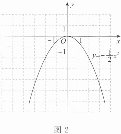 4. 二次函数 $ y = -\frac{1}{2}x^2 $ 的图象如图 2,将其向下平移 1 个单位,再向左平移 2 个单位得到抛物线 $ y = a(x + h)^2 + k $。