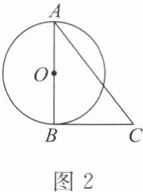 3. 如图2,△ABC的一边AB是⊙O的直径.请你添加一个条件,使BC是⊙O的切线.你所添加的条件是