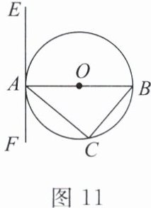 3. 如图11,已知△ABC内接于⊙O,AB为直径,∠B=50°,过点A作直线EF.当∠CAF=