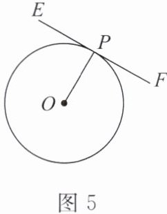 1. 如图5,已知⊙O的半径为5,直线EF经过⊙O上一点P.添加下列条件后,能判定直线EF与⊙O相切的是(