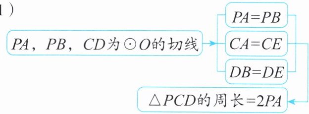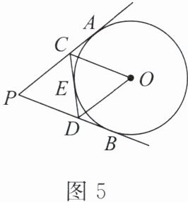 例 如图5,PA,PB与⊙O分别相切于点A,B,CD切⊙O于点E,△PCD的周长为12,∠P=60°.