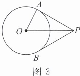 3. 如图3,PA,PB是⊙O的两条切线,A,B是切点.若∠APB=60°,PO=2,则∠APO=