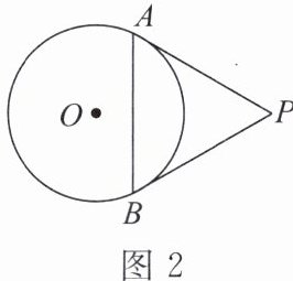 2. 如图2,PA,PB分别与⊙O相切于点A,B,PA=2,∠P=60°,则AB的长为(