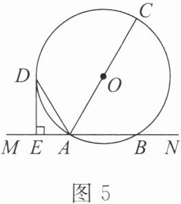 2. 如图5,直线MN交⊙O于A,B两点,AC是⊙O的直径,AD平分∠CAM,交⊙O于点D,过点D作DE⊥MN于点E.