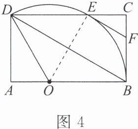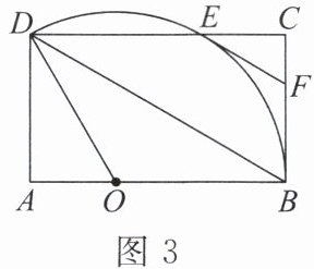 例2 如图3,在矩形ABCD中,点O在AB上,以点O为圆心,OB为半径作圆,所得⊙O交CD于点E,且恰好过点D,∠BOD=120°.连接BD,过点E作EF//BD,交BC于点F.求证:EF是⊙O的切线.