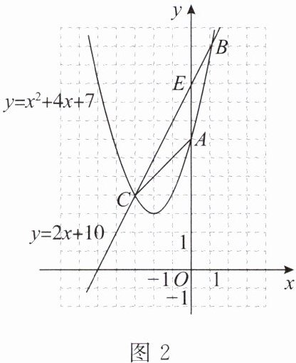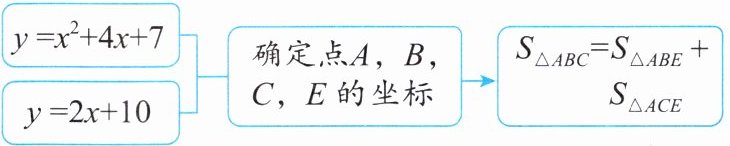 例 2 已知抛物线 $y = x^{2}+4x + 7$ 与 $y$ 轴交于点 $A$,与直线 $y = 2x + 10$ 交于点 $B$,$C$。求 $\triangle ABC$ 的面积。
