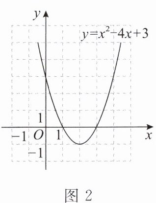 方法一:如图 2,在平面直角坐标系中画出二次函数 $ y = x^{2} - 4x + 3 $ 的图象。由图象可知,方程 $ x^{2} - 4x + 3 = 0 $ 的根是 $ x_{1} = 1 $,$ x_{2} = 3 $。