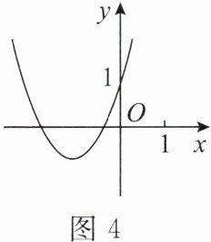 1. 在平面直角坐标系中,二次函数 $ y = ax^{2} + bx + c $ 的图象如图 4,则方程 $ ax^{2} + bx + c = 0 $ 的根的情况是(