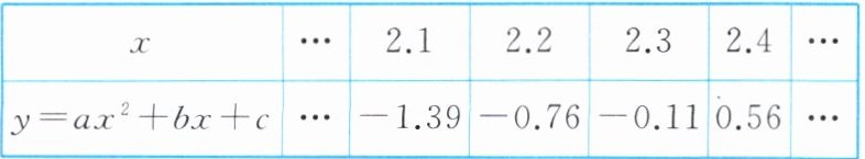 2. 根据下表中的信息,可知抛物线 $ y = ax^{2} + bx + c $ 与 $ x $ 轴的一个公共点的横坐标的取值范围是(