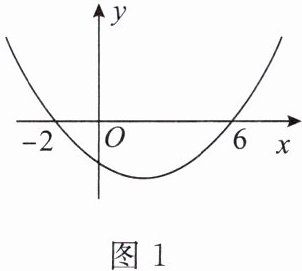 1. 如图1,抛物线$y = x^{2} - 4x - 12$与$x$轴有两个交点,分别为$(-2, 0)$,$(6, 0)$,则当$y < 0$时,$x$的取值范围是(