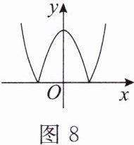8.$0 < m < 4$ 提示:观察图象可知,$y \geq 0$,当$-2 < x < 2$ 时,$y$的最大值为4.故当$0 < m < 4$时,直线$y = m$与函数$y = |x^2 - 4|$的图象有4个交点.此时,方程$|x^2 - 4| = m$($m$为实数)有4个不相等的实数根.