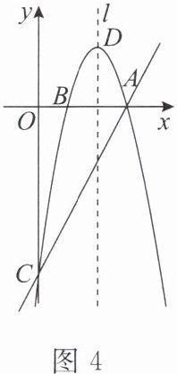如图4,已知一次函数y=2x-6的图象与x轴交于点A,与y轴交于点C,二次函数y=ax²+bx+c的图象经过点A,C,对称轴为直线l,顶点为D.这条抛物线与x轴的另一个交点为B(1,0).