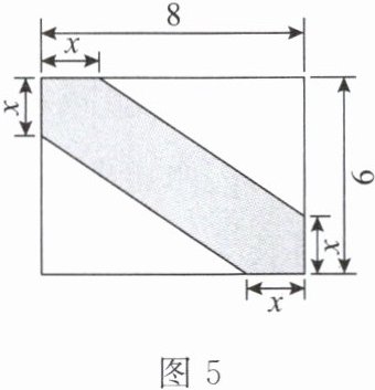 5. 如图 5(单位:$ \mathrm { ~m } $),有一块矩形油菜花地,现在其中修建一条观花道(阴影部分)供游人赏花。设改造后剩余油菜花地所占面积为 $ y \mathrm { ~m } ^ { 2 } $。