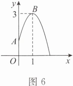 1. 某广场有一个小型喷泉,水流从垂直于地面的水管 $ OA $ 喷出,$ OA = 1m $。根据某方向上水流的抛物线路径的形状建立图 6 所示的平面直角坐标系,当水流与水管 $ OA $ 的水平距离为 $ 1m $ 时,水流达到最高点 $ B $,最大高度为 $ 3m $,则该水流的抛物线路径对应的函数表达式为(