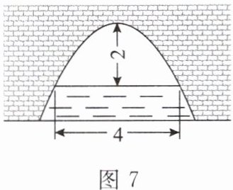 2. 如图 7,一抛物线形拱桥,当拱顶到水面的距离为 $ 2m $ 时,水面宽度为 $ 4m $;那么当水位上升 $ 1m $ 后,水面的宽度为