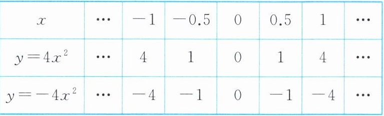 (3) 函数 $ y = 4x^2 $ 图象在 $ y $ 轴左侧部分是下降的,即当 $ x < 0 $ 时,函数 $ y $ 随 $ x $ 的增大而减小;在 $ y $ 轴右侧部分是上升的,即当 $ x > 0 $ 时,函数 $ y $ 随 $ x $ 的增大而增大.