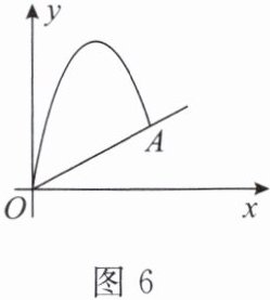 5. 如图 6,一小球从斜坡点 $ O $ 处抛出,球的运行路线是抛物线 $ y = 4x - \frac{1}{2}x^{2} $ 的一段,斜坡 $ OA $ 可以看成是直线 $ y = \frac{1}{2}x $ 的一段.则小球在斜坡上的落点 $ A $ 的垂直高度为