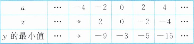 【举一反三】老师给出更多 $ a $ 的值,同学们即求出对应的函数在 $ x $ 取何值时,$ y $ 的最小值.记录结果,并整理成下表:
