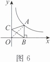 观察图象可知,$ \triangle ABC $ 的面积与反比例函数的比例系数 $ k $ 没有直接的联系,需要作辅助线构造与 $ k $ 相关的三角形。于是连接 $ OA $,则由 $ AB \perp x $ 轴,即 $ OC // AB $,可得 $ S_{\triangle OAB} = S_{\triangle ABC} $。