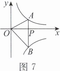 1. 如图 7,过 $ x $ 轴正半轴上任意一点 $ P $ 作 $ y $ 轴的平行线,分别与反比例函数 $ y = \frac{4}{x} $($ x > 0 $),$ y = -\frac{8}{x} $($ x > 0 $)的图象交于点 $ A $,$ B $,连接 $ OA $,$ OB $,则 $ \triangle OAB $ 的面积为(